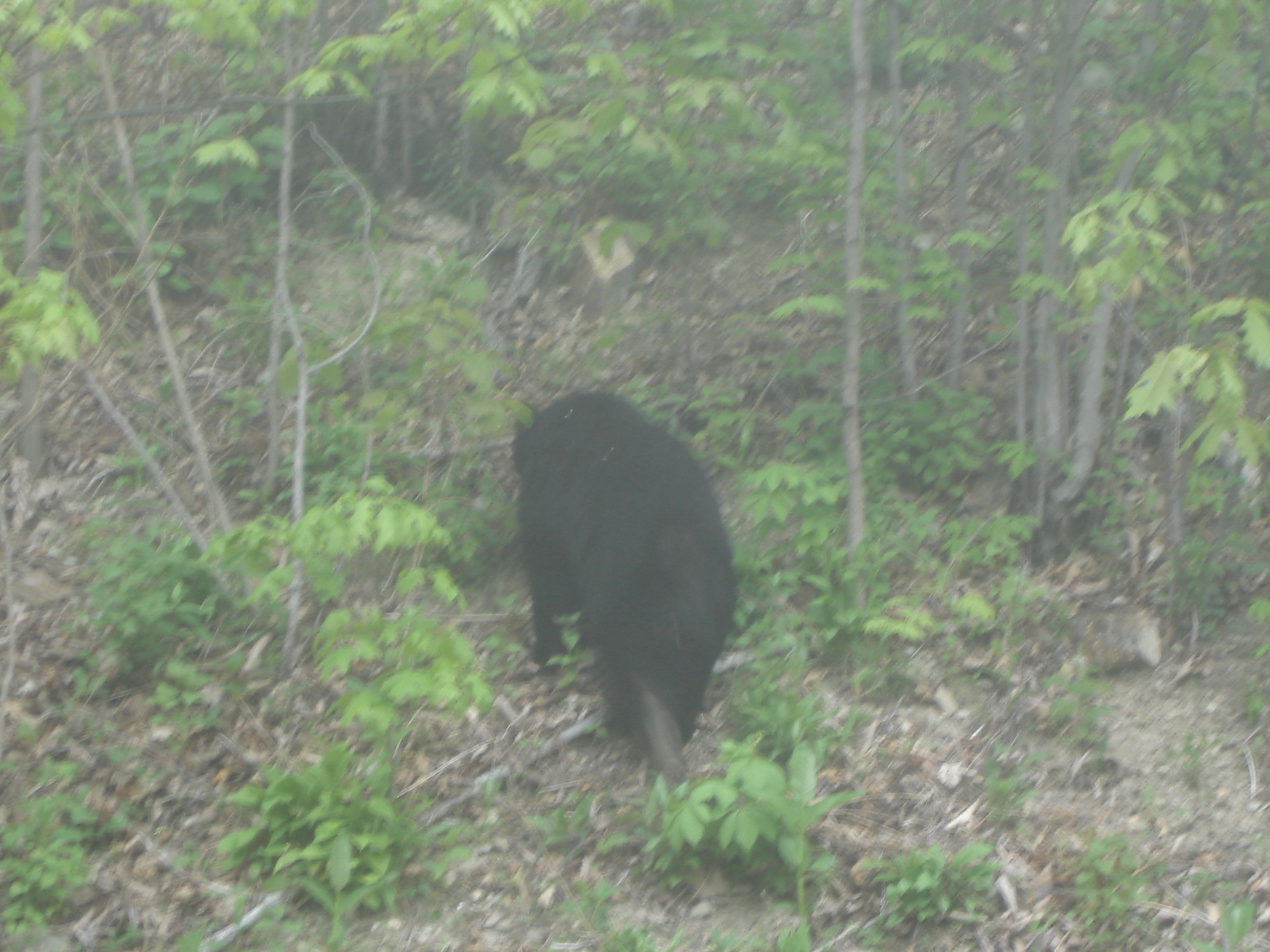 As you can see, it is a blurry picture of what might be a bear walking back into the forest. Looks like the butt of a black bear from what I can tell. I’m sure it was a bear but this picture could be used as proof of Bigfoot about as easily as it could be used as proof of a bear.