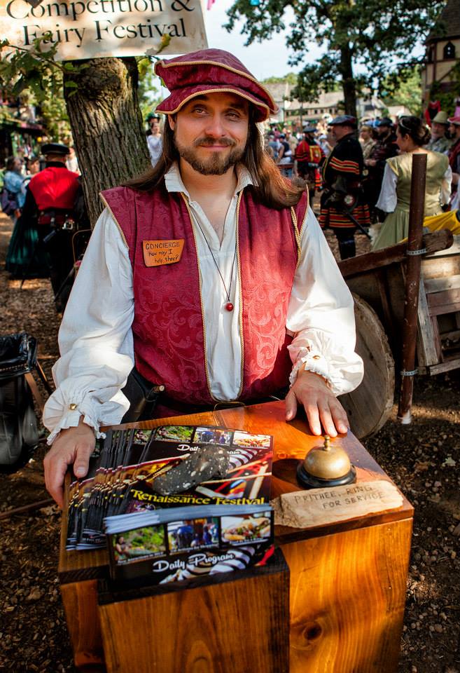 At the festival, he is a gifted up close performer. His Concierge character is not a boisterous character that draws a crowd but instead, he is a character built around the idea of improving the festival day for everyone who walks through the gate. Every interaction he has with a patron is a positive interaction.